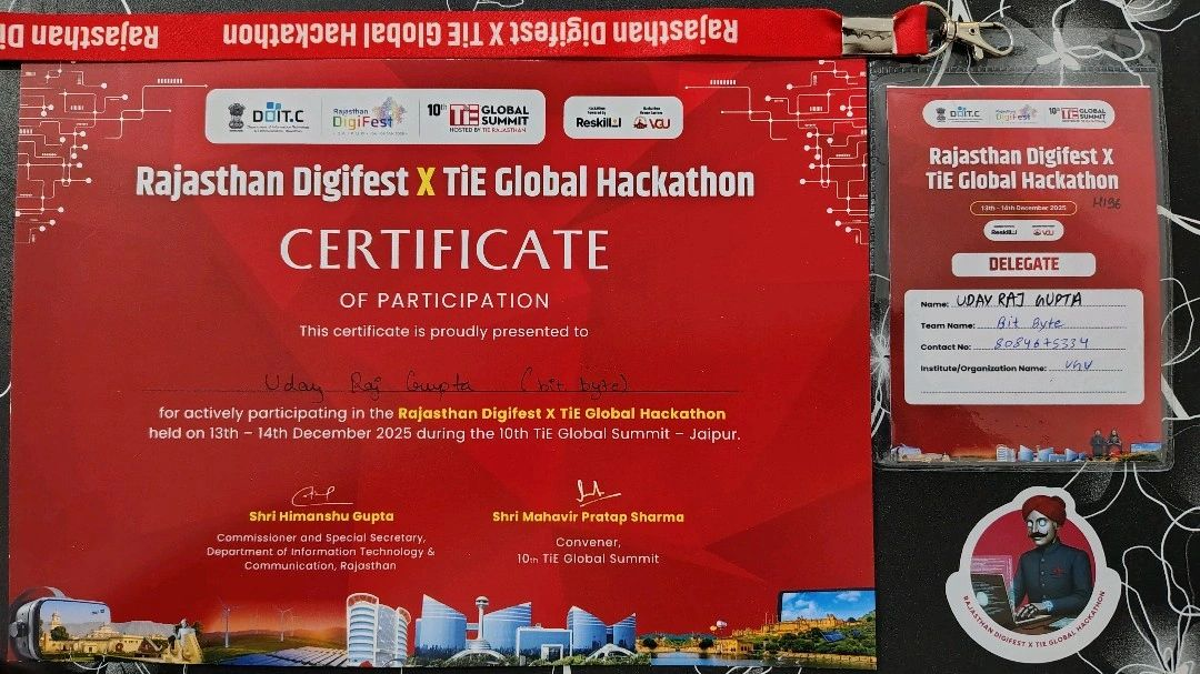 24 - Hour hackathon TiE Global Summit | Digifest Rajasthan built a project as per theme and got very new things to learn.